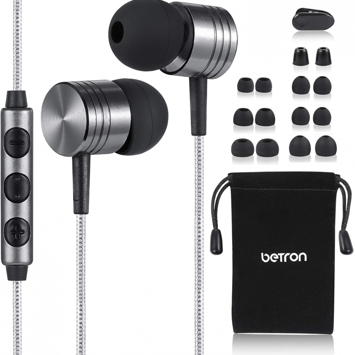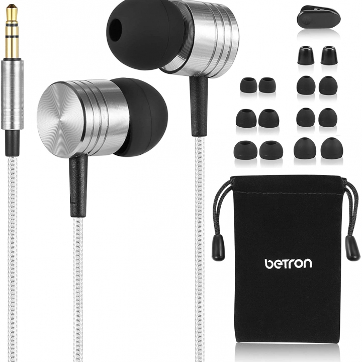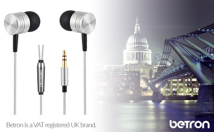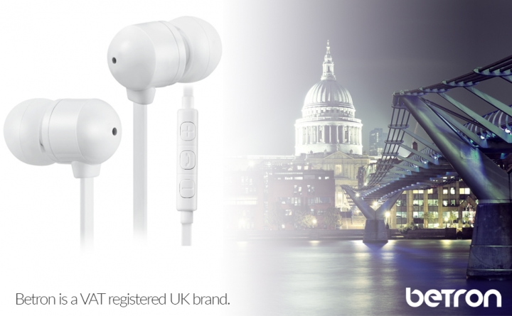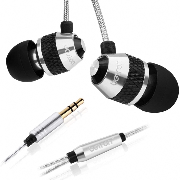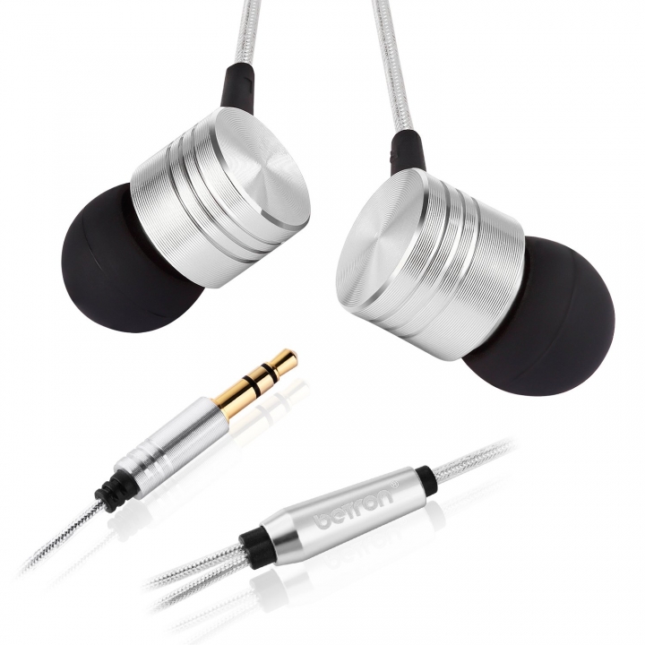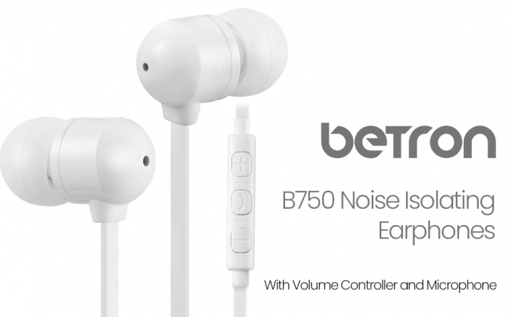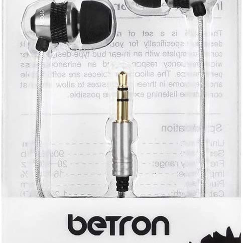 Heavy Bass Driven Sound and Stylish Earphones by Betron â these in-ear headphones from Betron are easy to slip into a pocket or backpack. Their punchy bass driven audio output unlocks more detail in every track and with a handy built-in microphone, taking and making calls is simple.