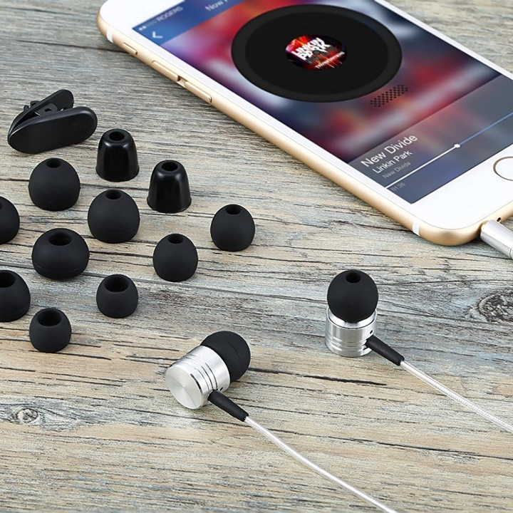- Super Bass Sound ; Stereo headphones with high quality drivers enables you to experience a clear and enhanced bass sound, while the ergonomic ear buds (in 6 different sizes) helps reduce ambient noise for a crystal clear listening experience