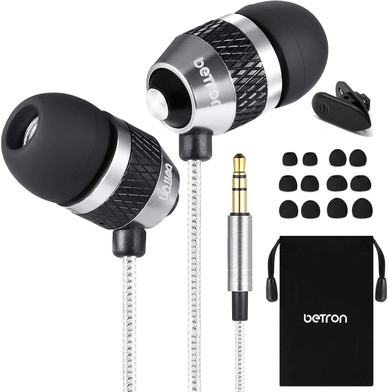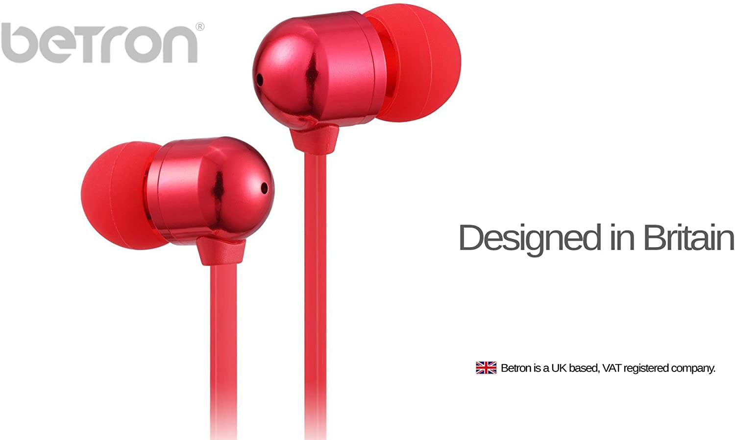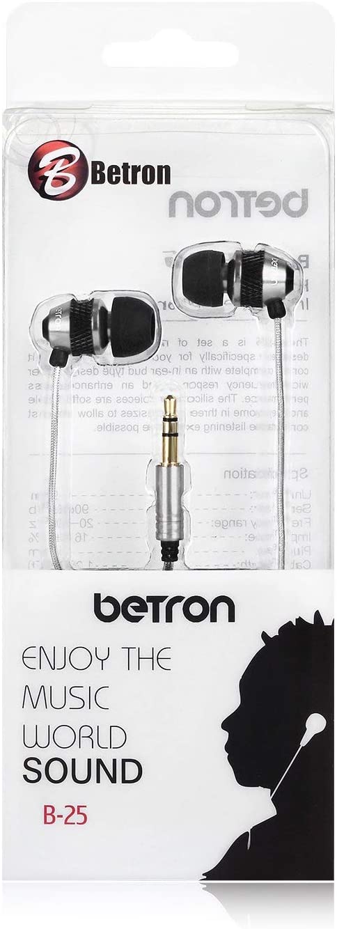 Heavy Bass Driven Sound and Stylish Earphones by Betron â these in-ear headphones from Betron are easy to slip into a pocket or backpack. Their punchy bass driven audio output unlocks more detail in every track and with a handy built-in microphone, taking and making calls is simple.